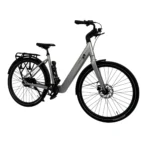Het elegante, robuuste frame met lage instap maakt op- en afstappen gemakkelijk en geeft vertrouwen in druk stadsverkeer. Daarbij zorgen de strak geïntegreerde verlichting, de nette kabelafwerking en de stabiele standaard voor een praktische én stijlvolle afwerking.